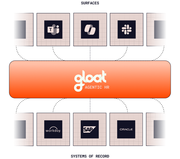 Gloat connects to your existing systems of record and delivers intelligence through the surfaces your employees already use.
